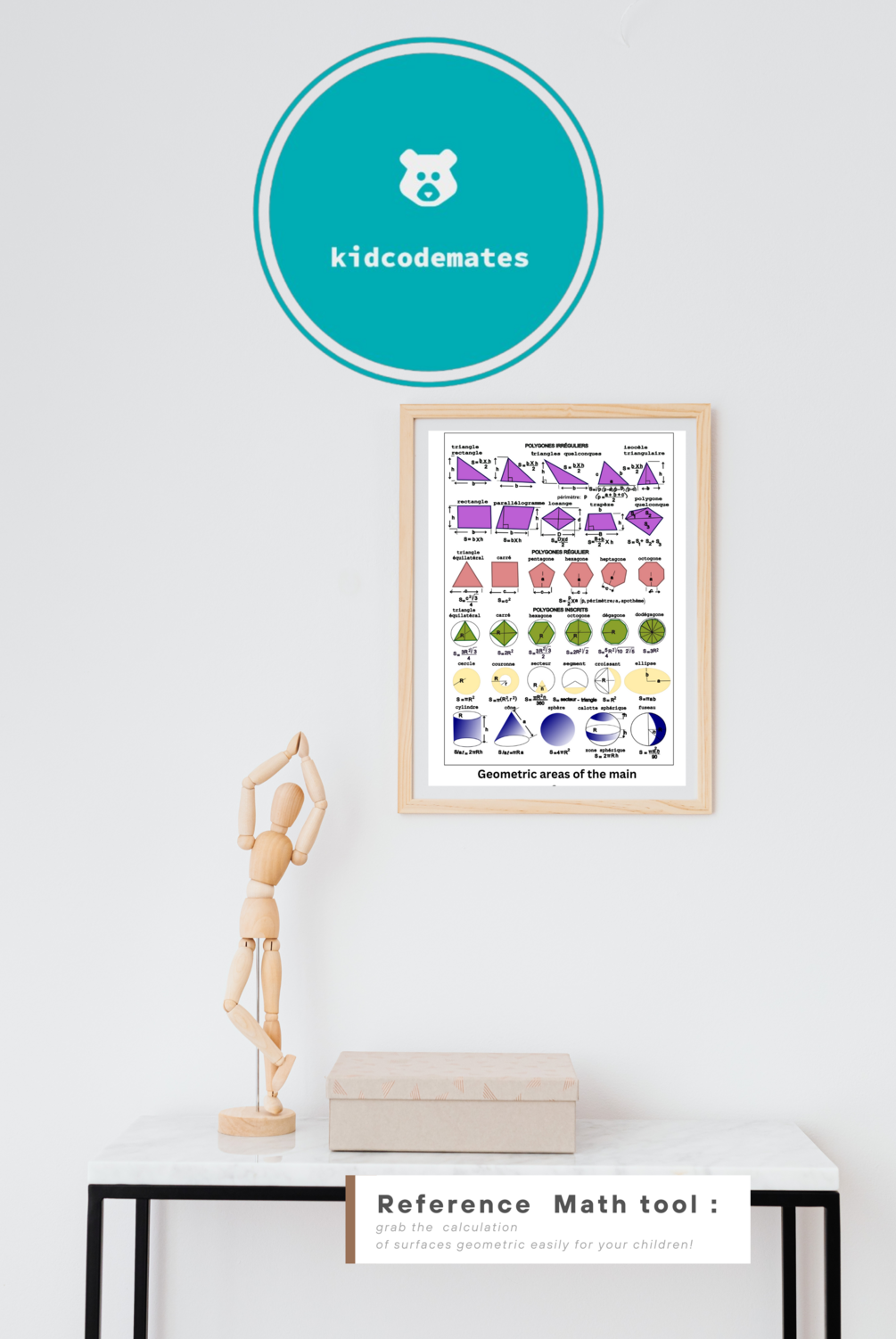 Explore the exciting world of geometry with this fun and educational "Geometric Areas of Surfaces" Reference Tool! Perfect for children aged 5-8, this visually engaging chart introduces key concepts like triangles, rectangles, circles, and more in a way that’s easy to understand and fun to explore. Designed to inspire a love of learning, this tool is perfect for classroom posters, homeschooling activities, or as a quick reference for kids beginning their coding journey. Build spatial awareness and math confidence while connecting geometry to real-world applications in a creative and colorful way. What’s Included: Clear visual diagrams of main geometric shapes. Easy-to-follow formulas for surface area calculations. A vibrant and child-friendly design. A sneak peek into Volume 1’s fun Python flashcards via a QR code! Whether you're a parent, teacher, or curious child, this guide is your first step into the exciting intersection of geometry and coding!